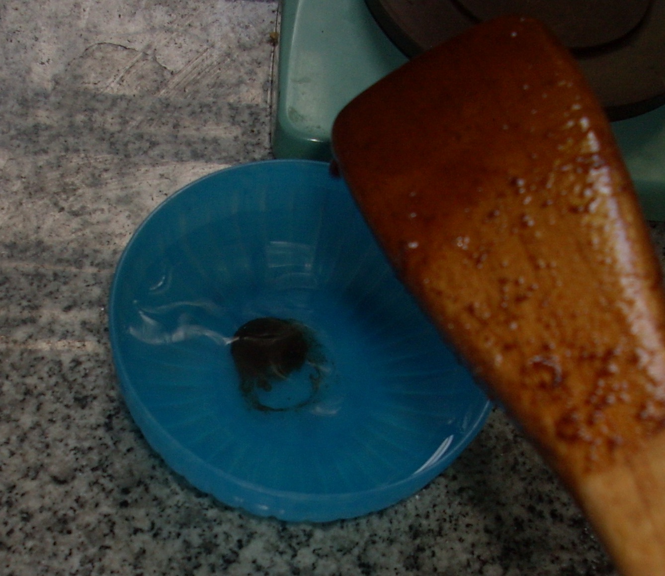 Ahí hay que empezar a hacer la prueba de la bolita: en un pote con agua echar un chorrito de mezcla. Si ésta no se diluye automáticamente sino que queda con la forma casi con que tocó el agua, entonces hay que apagar el fuego.