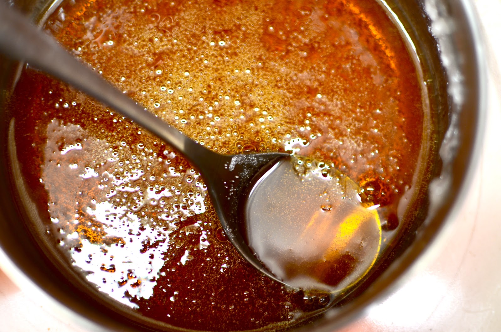 - Cuando llegue a un color ámbar, agregar la manteca, revolviendo hasta que se calme el burbujeo