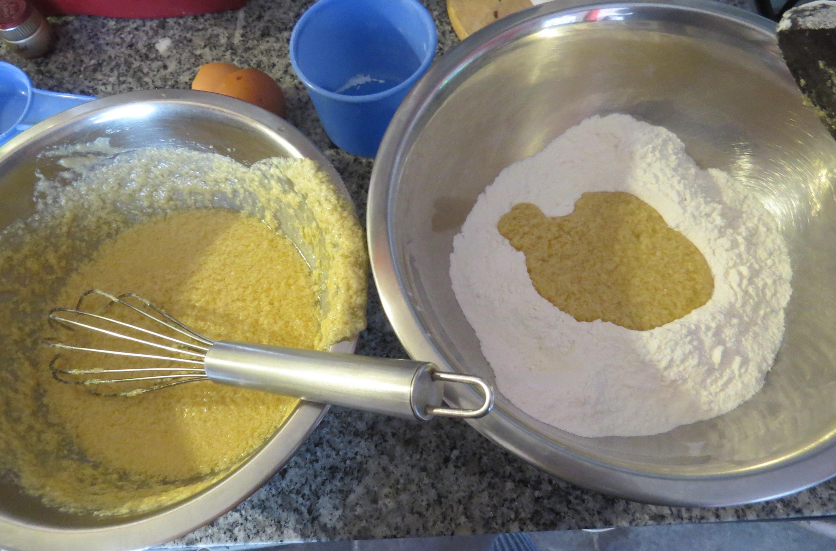 Tenemos, por un lado, mezcla líquida, y por otro la de la harina.